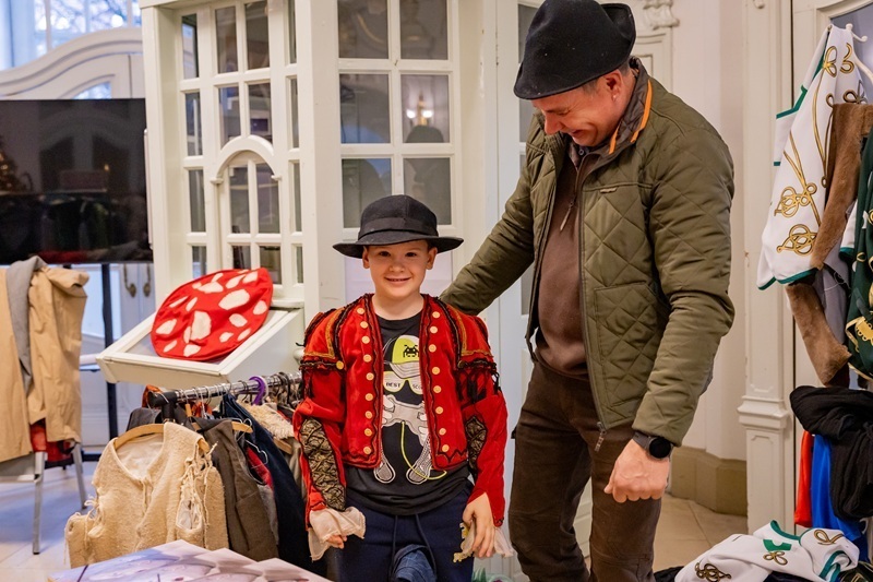 Számos különlegességre lehetett bukkanni ezúttal is az előcsarnokunkban, ami erre a napra egy varázslatos jelmezraktárrá változott át. Például Csombor Teréz számos jelmezét, Ganxta Zolee pólóját, elegáns táskákat kesztyűket, egy trükkös, duplafalú üveget vagy éppen az egyik mesedarabunk világító varázspálcáját is haza lehetett vinni.