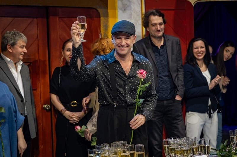 A premier utáni ünnepségen elsőként Szente Vajk, a teátrum főrendezője köszöntötte az alkotókat. „Egy olyan műfajból, ami több száz éves múltra tekint vissza, és nagyon színészközpontú, abból csak olyan rendezői színházat lehet csinálni, ami szintén ezt az elvet követi. Ehhez nagyszerű színészek és egy kiváló főszereplő kell, valamint egy remek csapat mögéjük. Ha ez nincs meg, akkor az előadás nem éri el a célját, vagyis azt, hogy a nézők jól szórakozzanak. A Két úr szolgájának pedig éppen ez a szent célja, és úgy tűnik, hogy ez nagyon jól sikerült. Gratulálok nektek!”